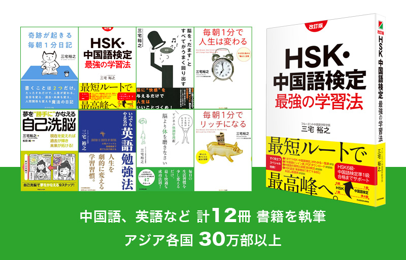 著書は「中国語検定・HSK 最強の学習法」(KADOKAWA)など多数、アジア各国で累計30万部以上。