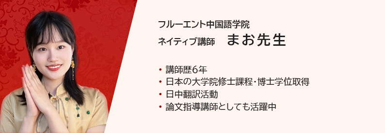 好きな中国人タレントがきっかけで中国語を始めましたが、独学で身につかなくて悩んでいました。仕事をしながら勉強できる方法を探し、フルーエントを受講しました。