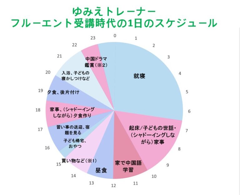 ゆみえトレーナー:また、フルーエントの学習においてはトレーナーの存在が大きかったです。担当いただいていたトレーナーとは、同じ北京に留学していたり、子供の年齢が近いこともあって、中国の話、子供の話など雑談させていただくことが多かったです。中国話は盛り上がって、モチベーションが上がりました。
